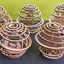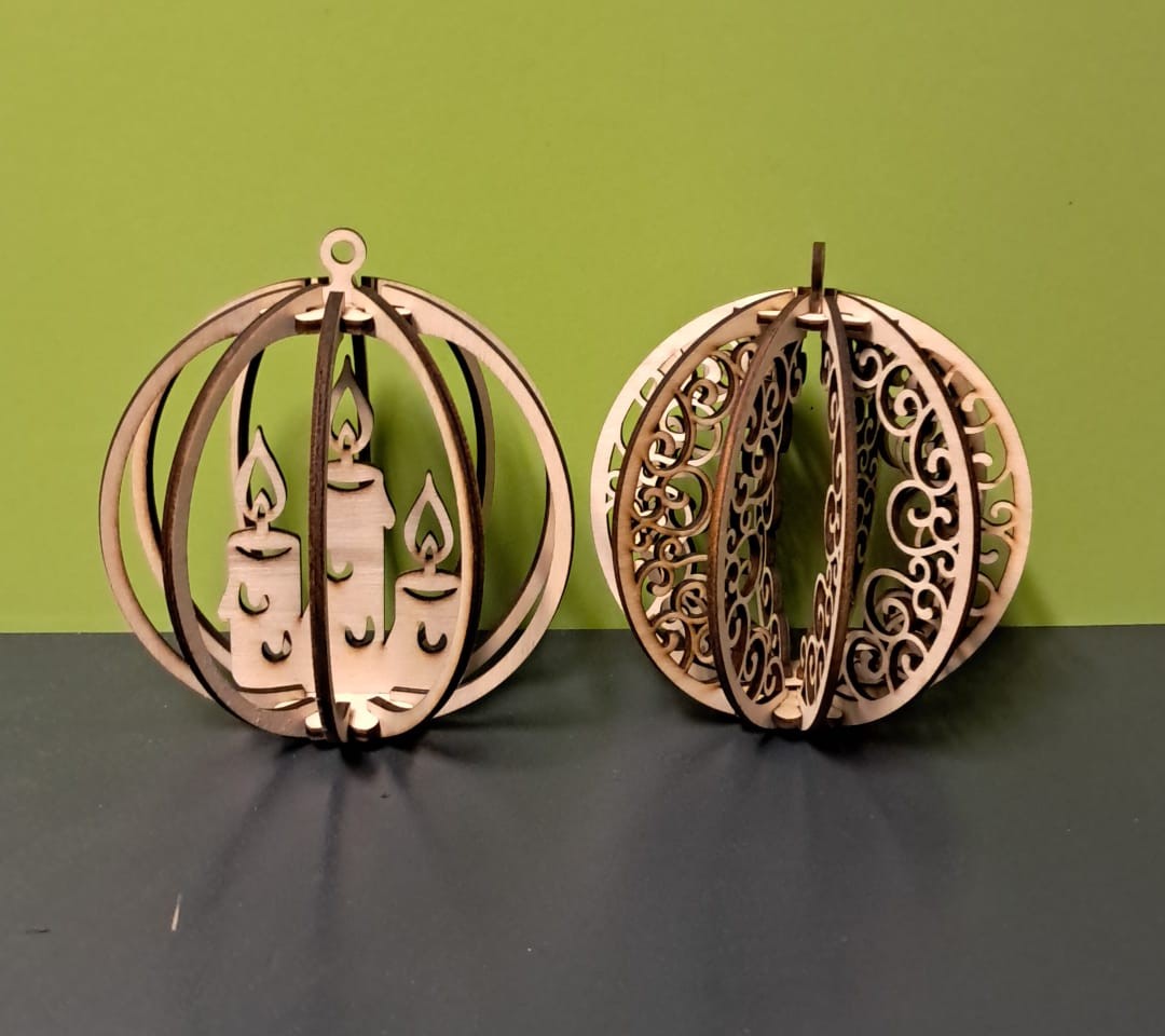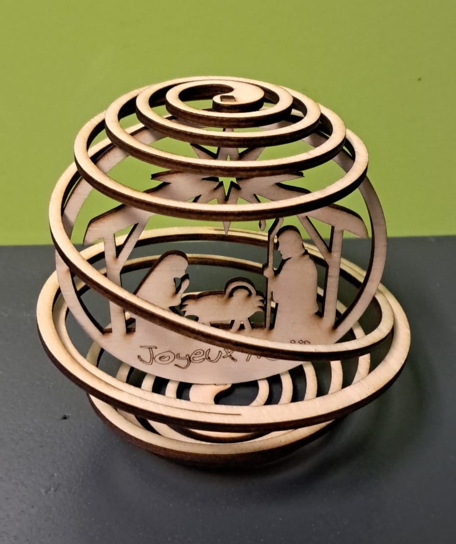 - Boule 3D assemblée : plusieurs couches de bois découpées et emboîtées pour créer un joli volume