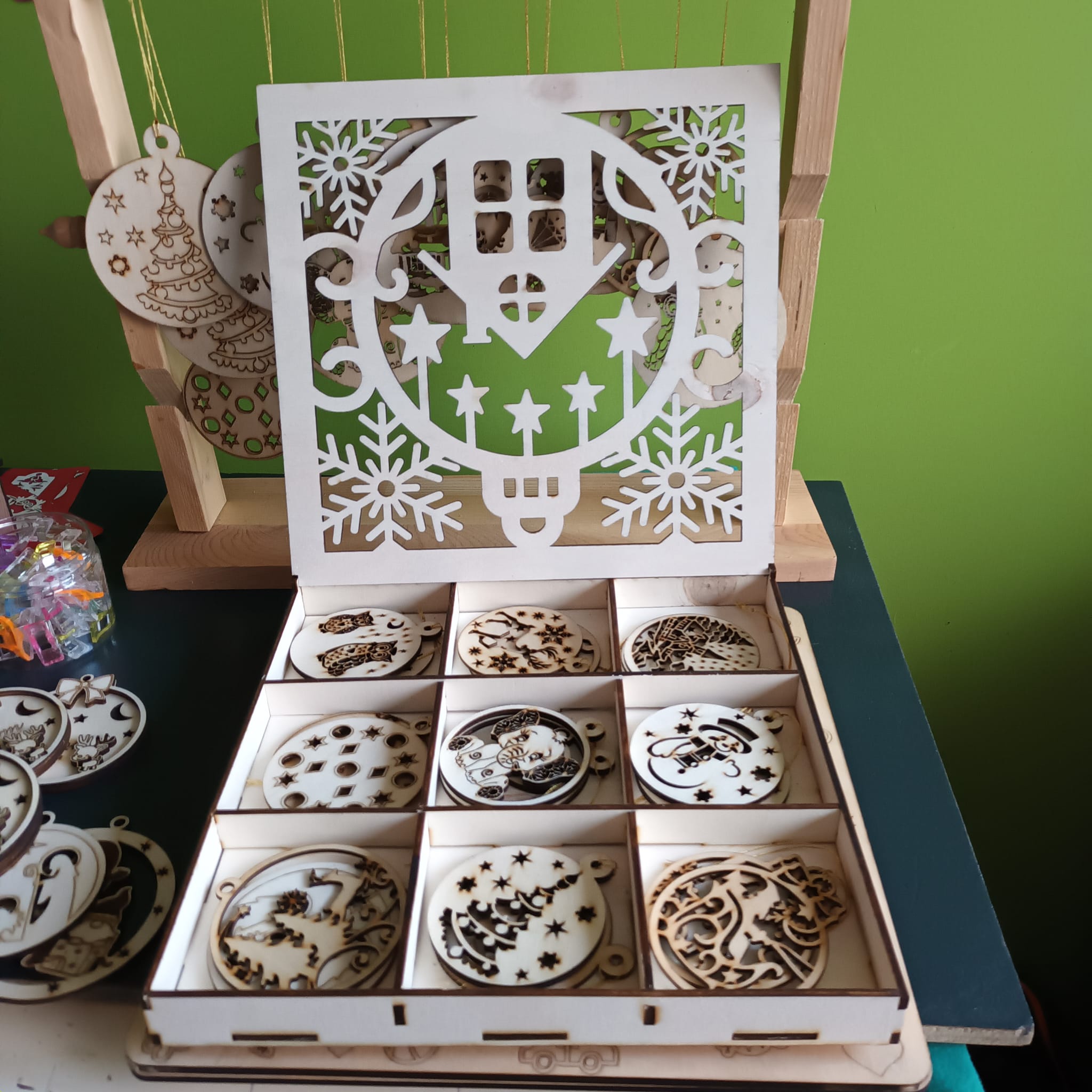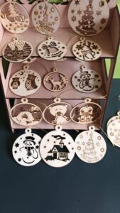 Ces boules de Noël en bois sont bien plus que de simples décorations de sapin : ce sont des créations artisanales faites main dans mon atelier, découpées à la scie à chantourneuse dans du bois naturel. Contrairement aux boules en verre ou plastique, elles sont solides et légères.