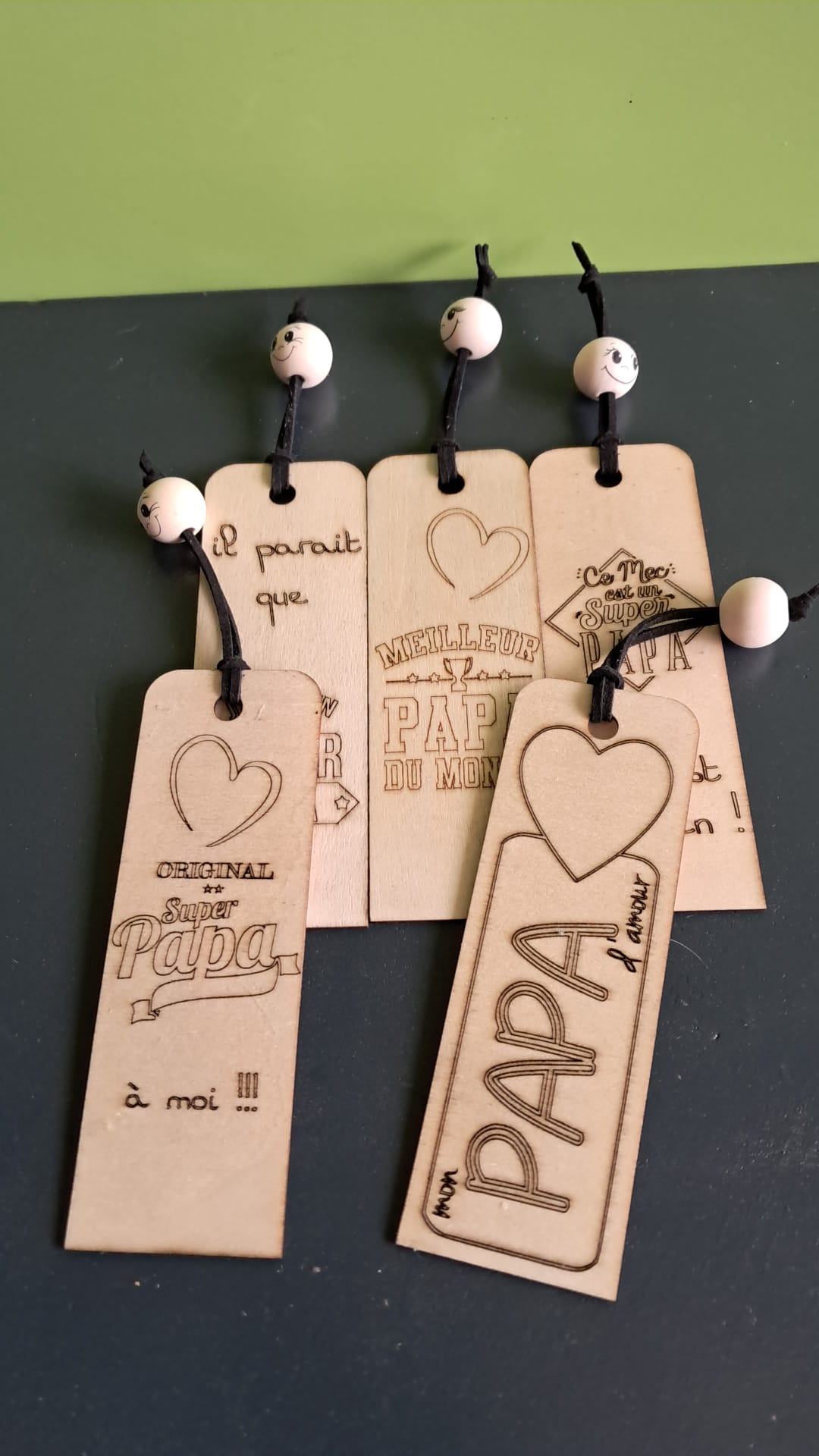 Offrir un livre, c’est bien. L’accompagner d’un marque-page en bois fait main, c’est encore plus touchant ! Ces signets artisanaux sont découpés à la scie à chantourner dans du bois naturel (contreplaqué de peuplier ou MDF 3 mm), avec soin et précision, dans mon atelier.