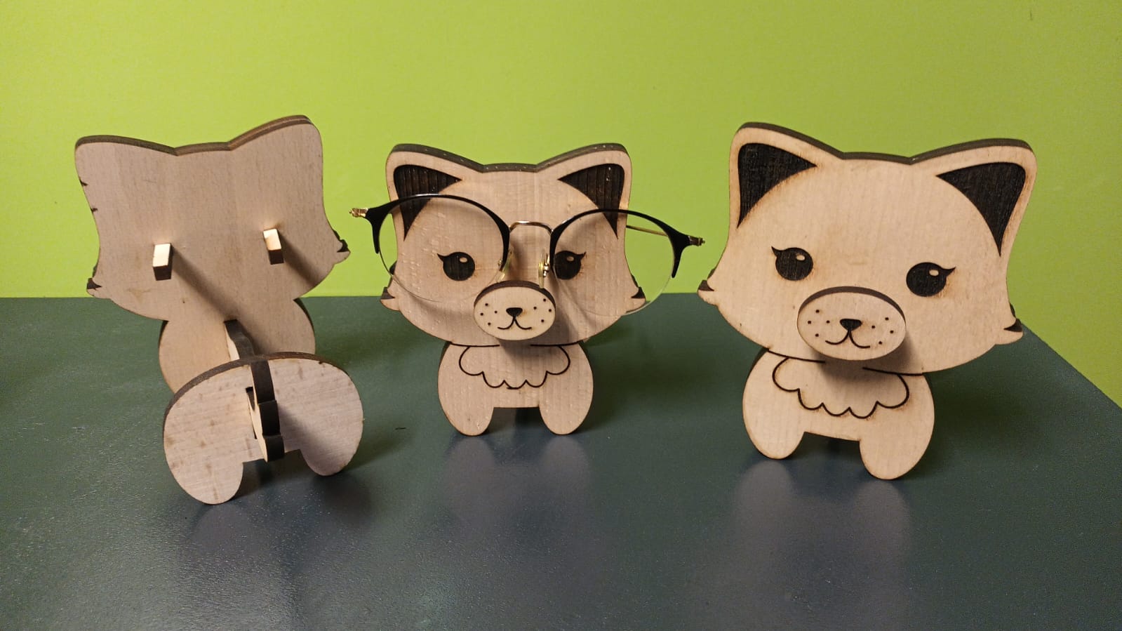 Porte-lunettes chat en bois artisanal découpé à la chantourneuse